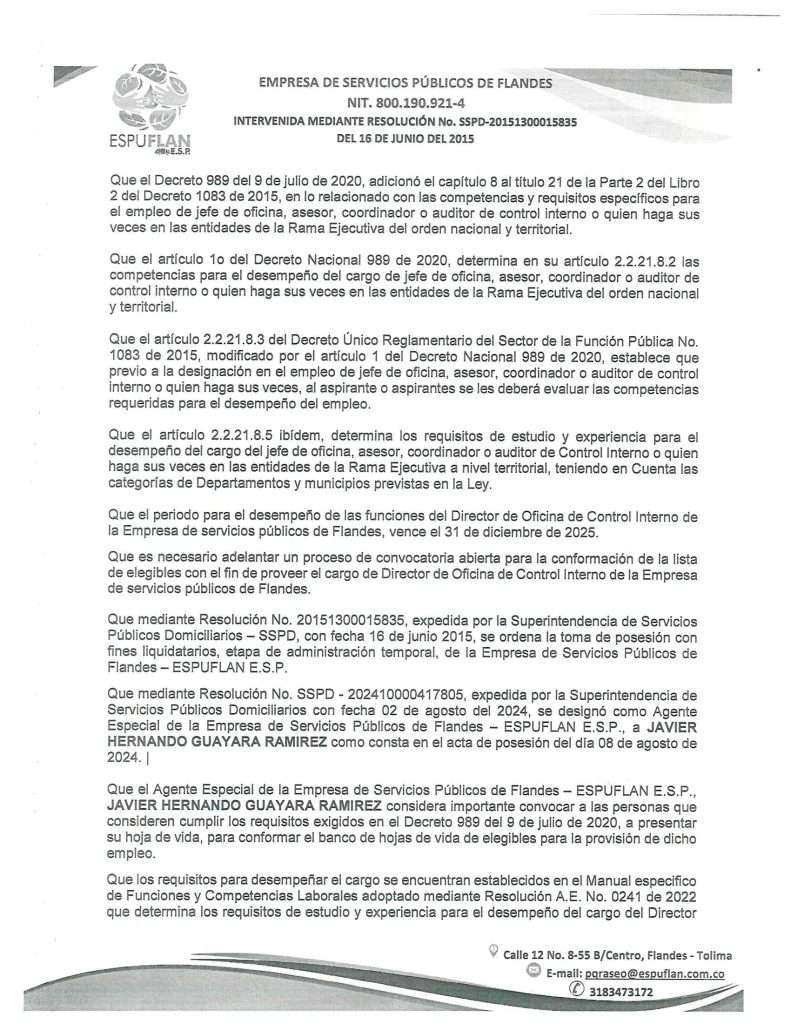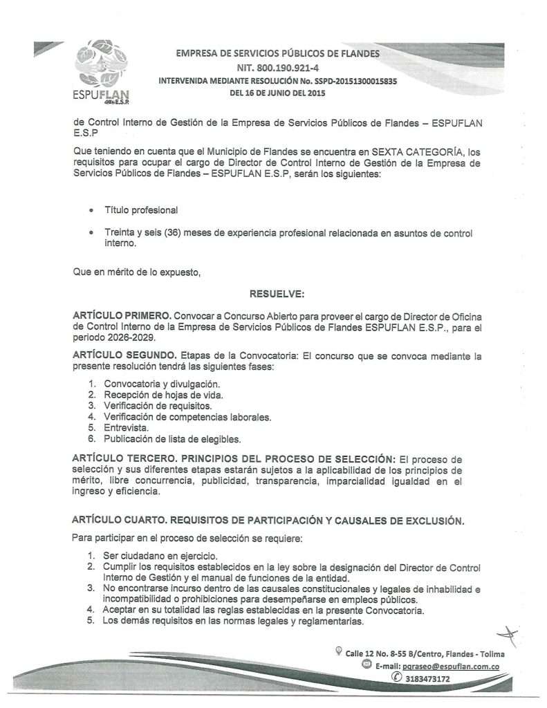!!CONVOCATORIA PARA EL CONCURSO AL CARGO DIRECTOR DE CONTROL INTERNO!!