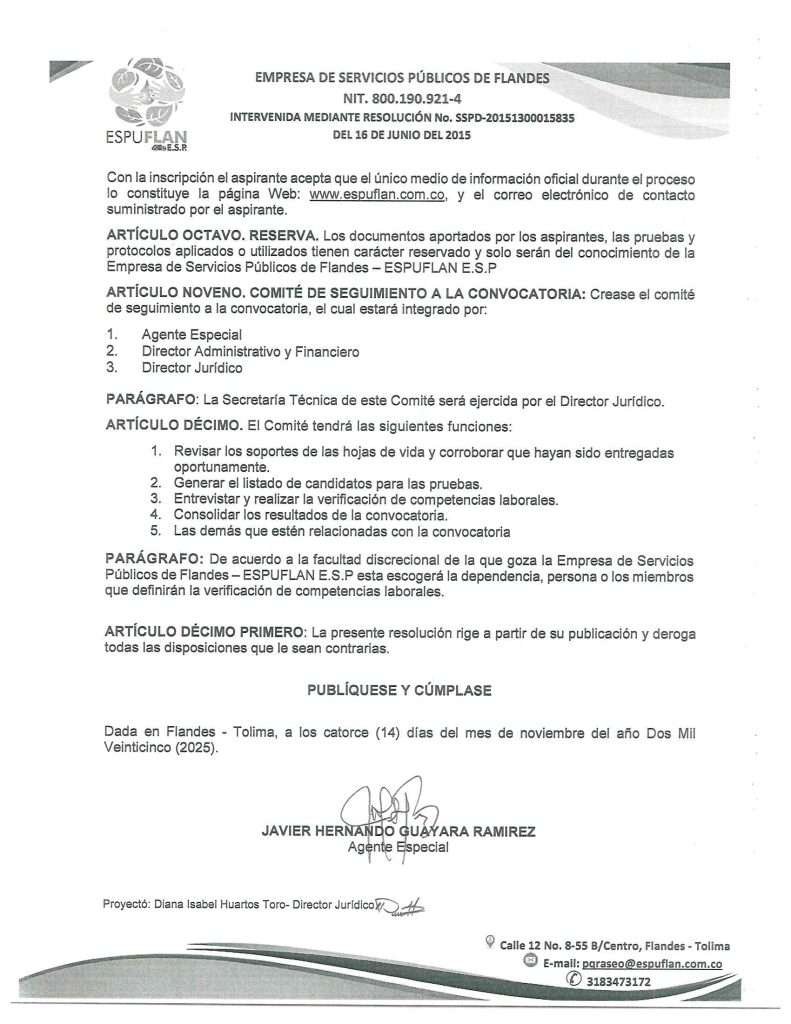Para notificaciones judiciales y reclamaciones al correo pqraseo@espuflan.com.co