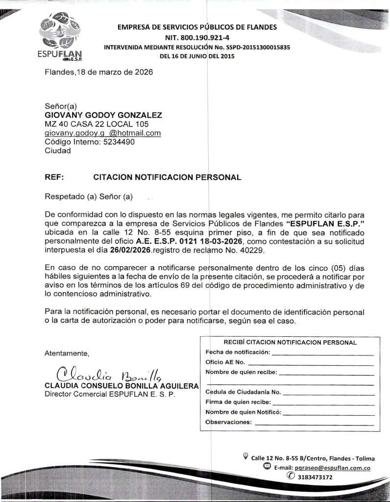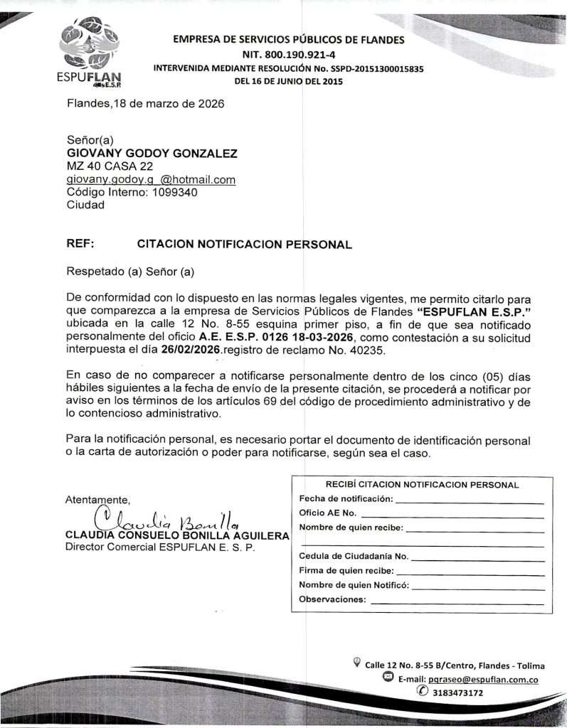 Para notificaciones judiciales y reclamaciones al correo pqraseo@espuflan.com.co
