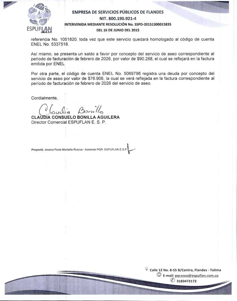 Para notificaciones judiciales y reclamaciones al correo pqraseo@espuflan.com.co