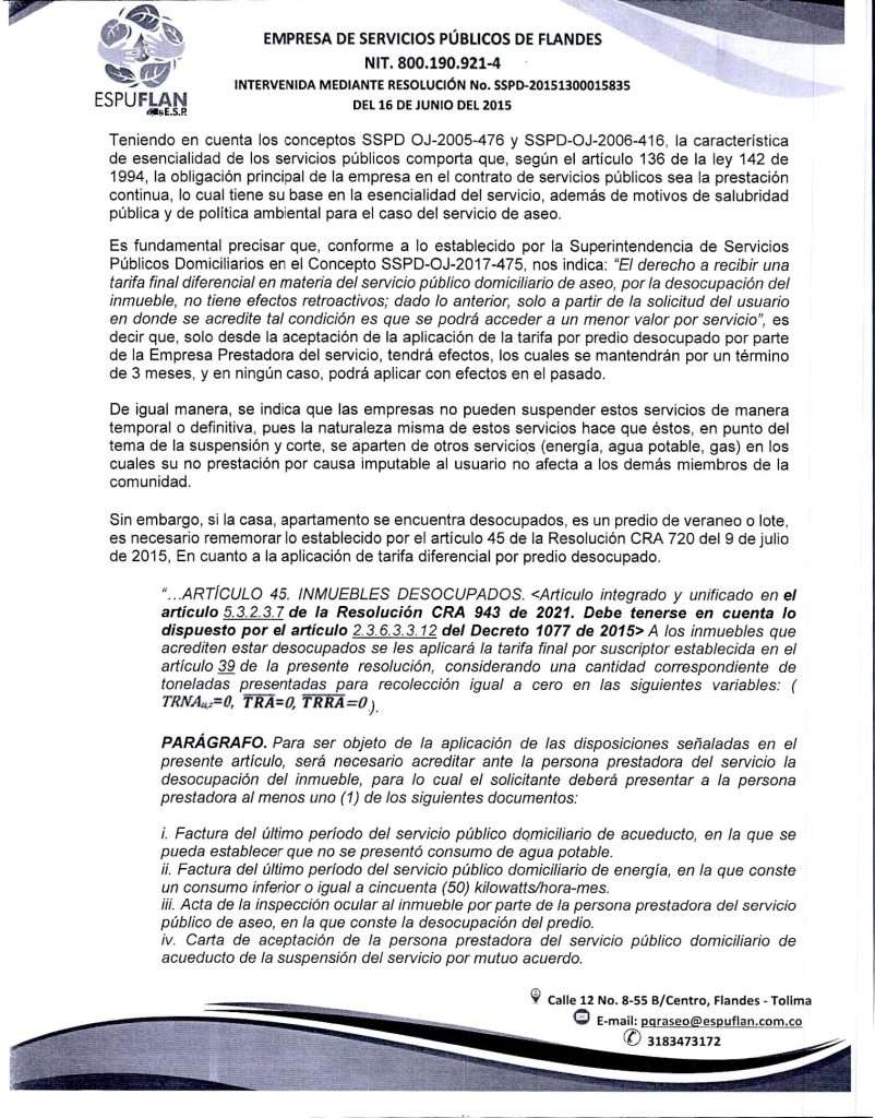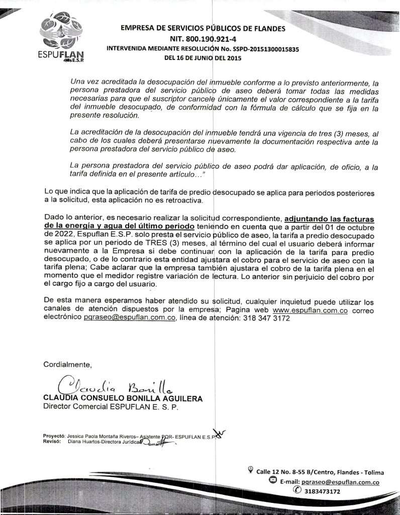 Para notificaciones judiciales y reclamaciones al correo pqraseo@espuflan.com.co