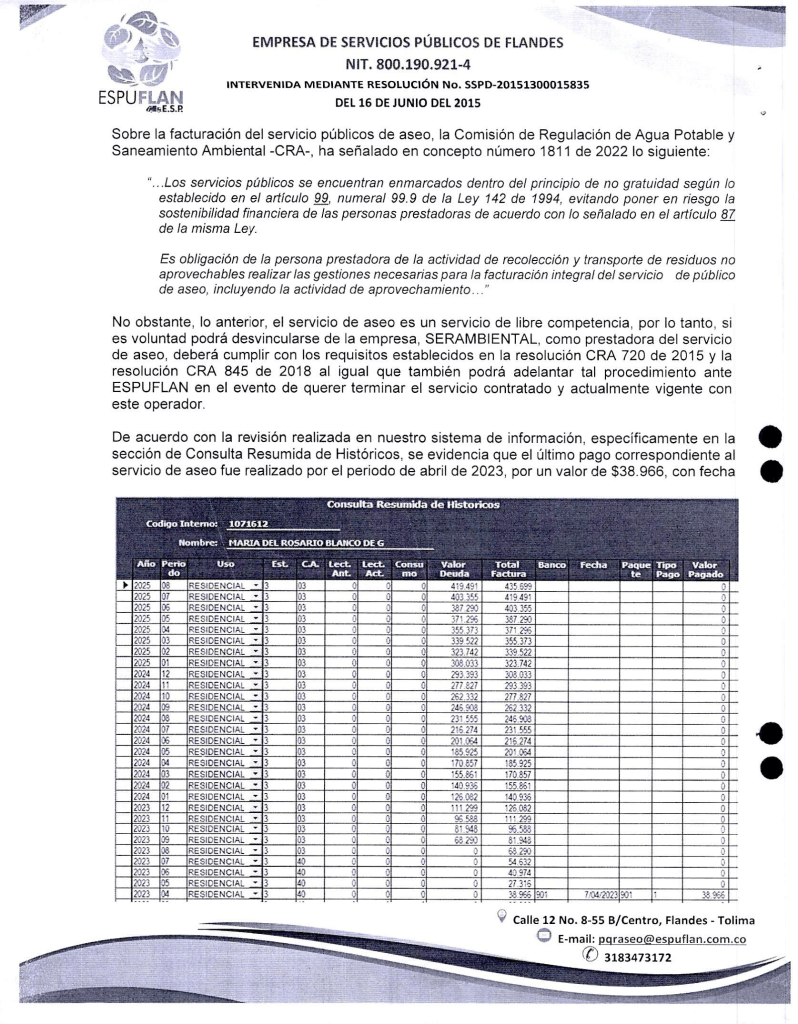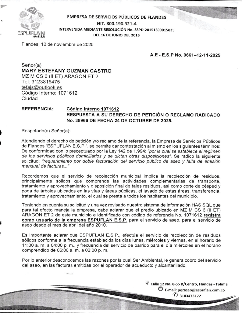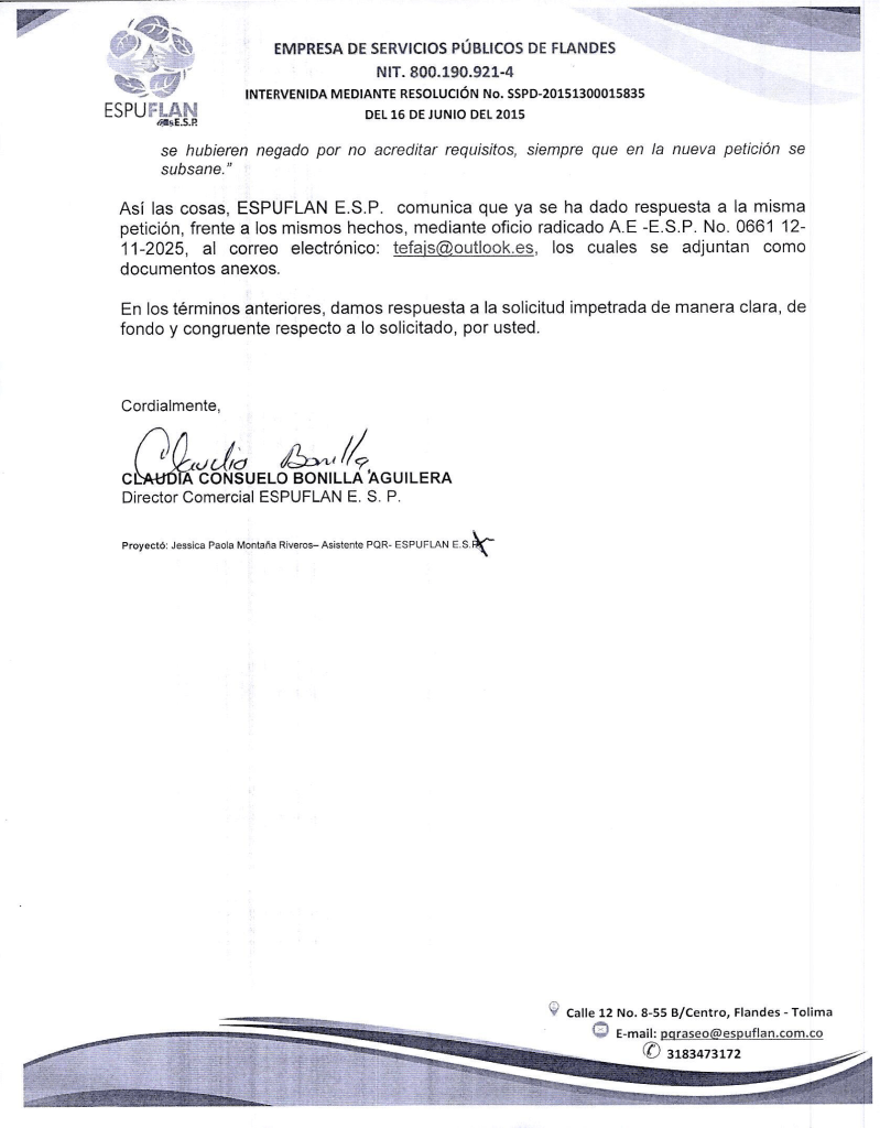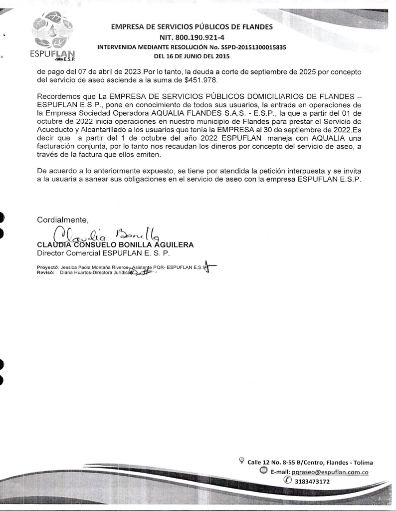Para notificaciones judiciales y reclamaciones al correo pqraseo@espuflan.com.co