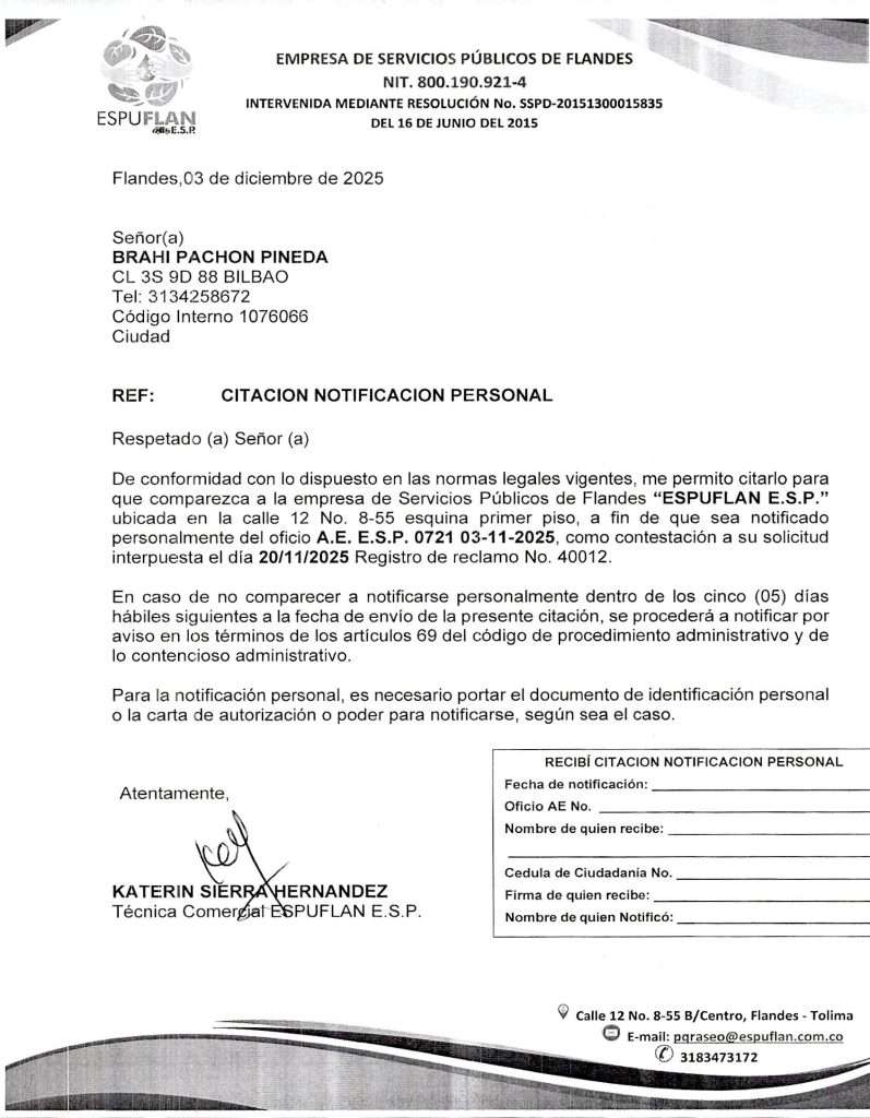 Blog!CITACIÓN NOTIFICACIÓN PERSONAL LILIA DIAZ CLAVIJO -TORRES CARLOS! Admin Espuflan / diciembre 9, 2025