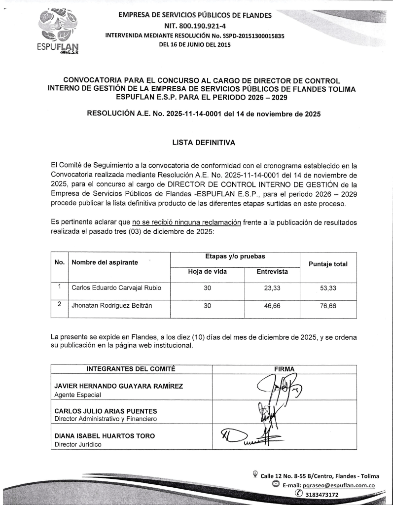 Blog!!RESULTADOS DE LA CONVOCATORIA CARGO CONTROL INTERNO DE GESTIÓN!! Admin Espuflan / diciembre 3, 2025