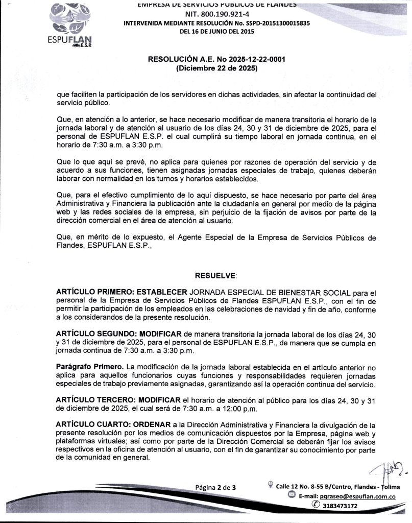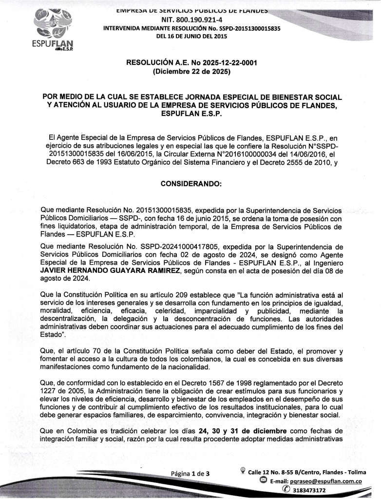 Para notificaciones judiciales y reclamaciones al correo pqraseo@espuflan.com.co