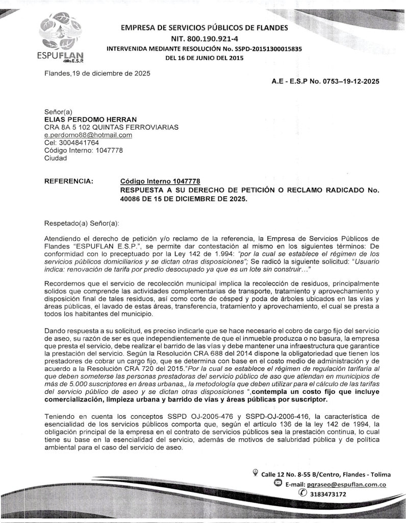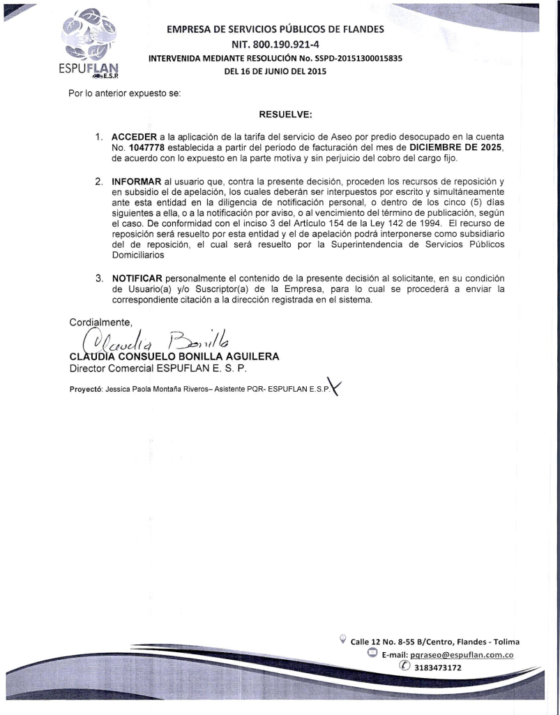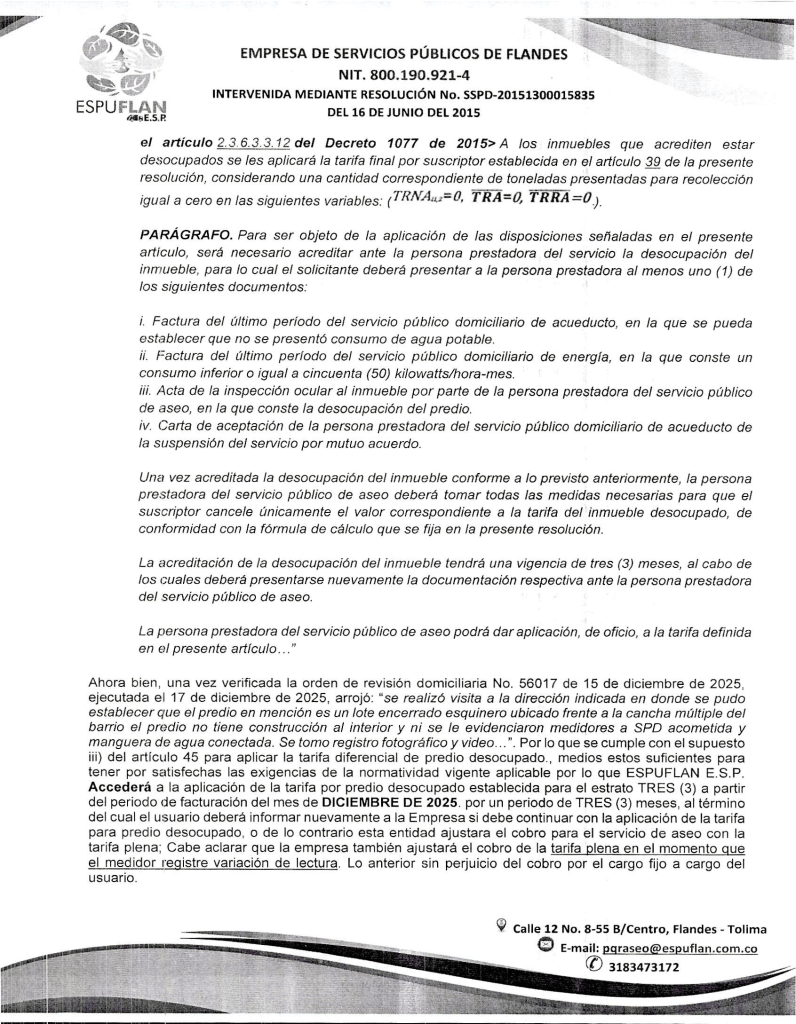 Para notificaciones judiciales y reclamaciones al correo pqraseo@espuflan.com.co