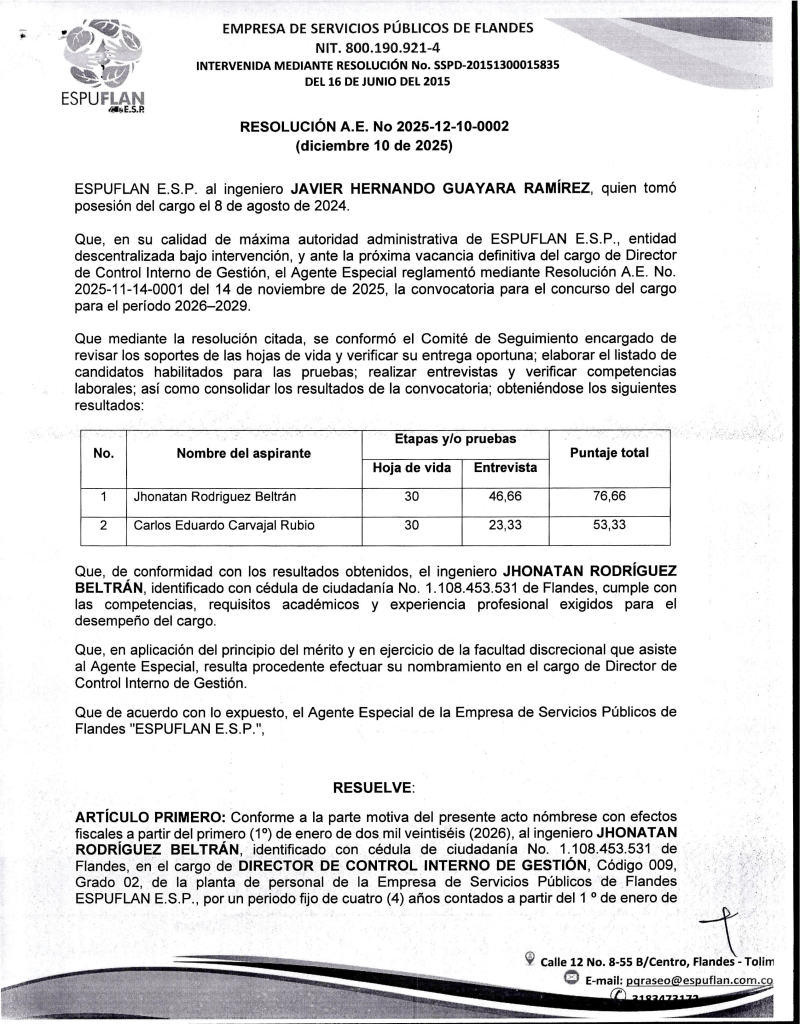 Resolución 2025-12-10-0002 Nombramiento Control interno