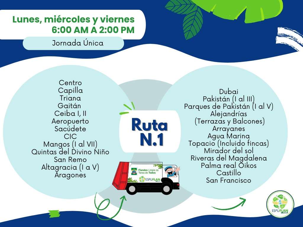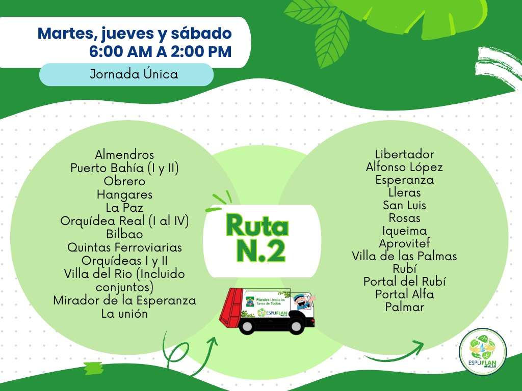 En Rutas de recolección Espuflan encontrarás los sectores, horarios y frecuencias establecidos para la recolección de residuos sólidos. Esta sección de rutas de recolección Espuflan facilita a la comunidad el acceso a la información del servicio de aseo prestado con eficiencia en el municipio de Flandes.